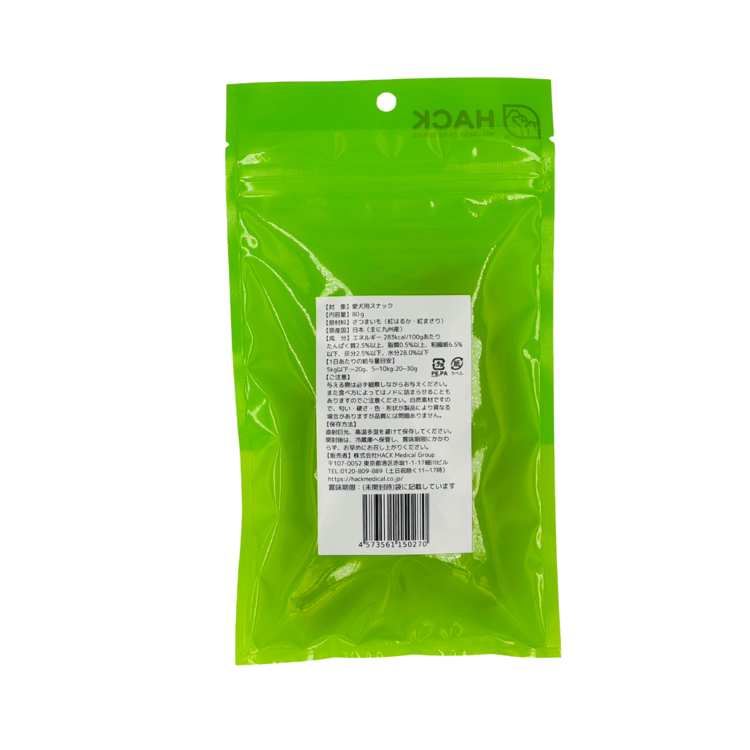 九州産さつまいも(紅はるか・紅まさり)を100%使用。保存料・着色料・発色剤・酸化防止剤を一切使わない、安心安全の犬用無添加おやつです。